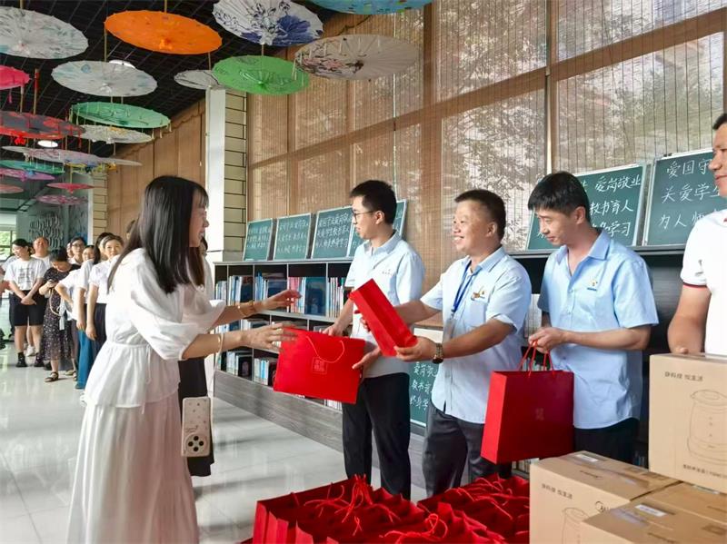 隨后,慰問小組與學校教師代表一同舉行了簡單而溫馨的禮物贈送儀式。每份禮物都承載著浙江金彩對教師群體的貼心關懷。當教師們接過禮物時,臉上洋溢著幸福的笑容。